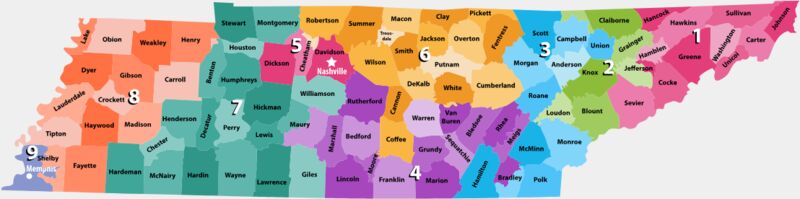 Tennessee Counties Districts Map 1